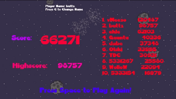 | Tags | 2D, Arcade, GameMaker, High Score, Indie, Pixel Art, Retro, Short, Singleplayer, Space |